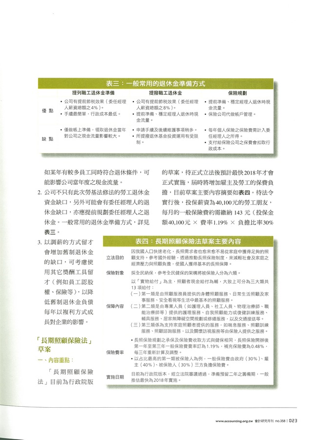 發佈於 2017-08-17 作者: adminuser「勞基法修正案」及「長期照顧保險法」對企業的影響與因應 (會計研究月刊 / 1040901) 作者:葉崇琦 來源:會計研究月刊 (No.358 / 1040901)